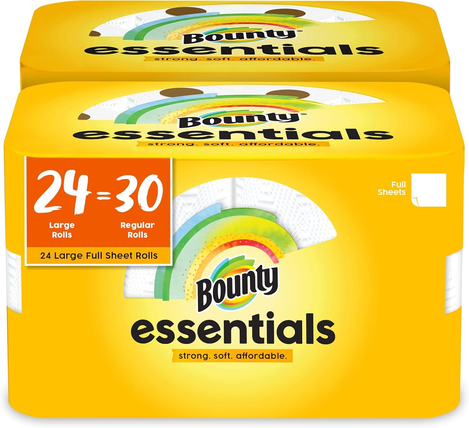 Bounty Essentials Full Sheet Paper Towels, 24 Large Rolls = 30 Regular Rolls, 12 Count (Pack of 2)(White)